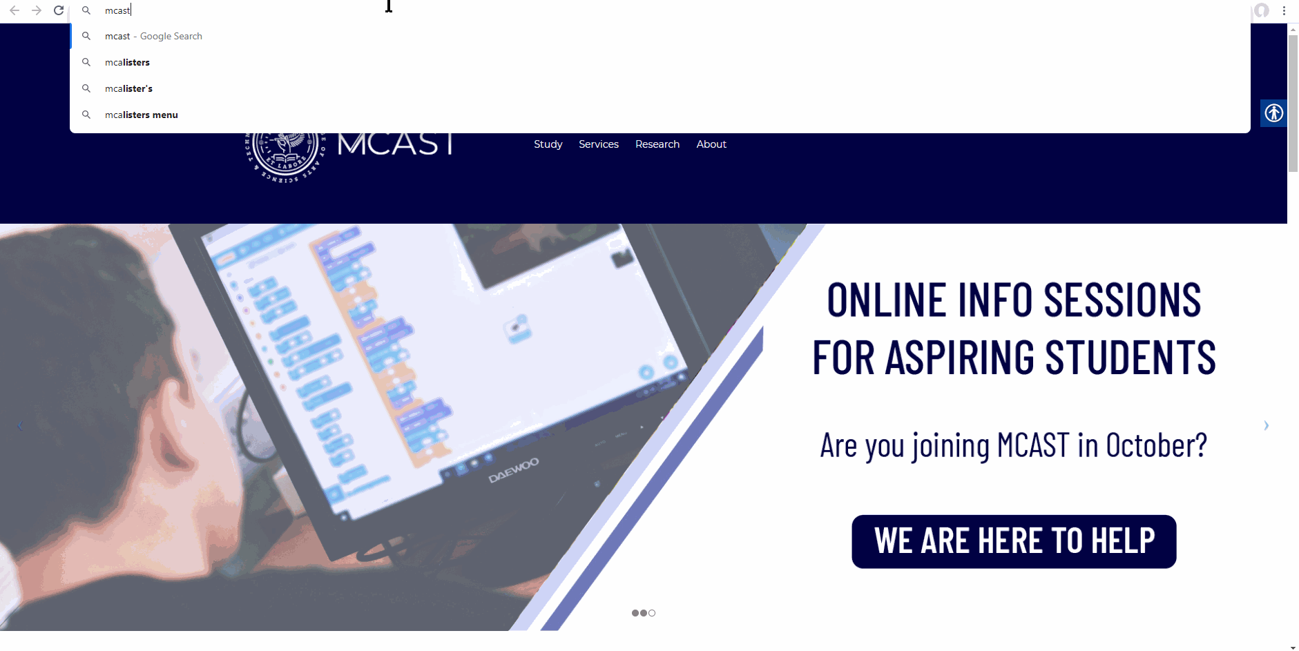 | If there is a real need for you to come over physically to MCAST for assistance (such as because you do not have a device form where to do this online process), please ensure that you first send an email to mcast7888@mcast.edu.mt for an appointment to be given to you (giving you a date and time and venue where to present yourself in). |